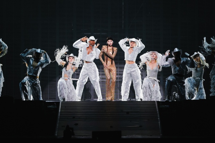 作为“仙那度”演唱会IP的全面升级,本次巡演以“XANADU 2.0”为核心概念,打造更具未来感与东方意蕴的沉浸式舞台。舞美设计深受贵州非遗文化启发,融合动态灯光、多媒体视觉与立体空间构造,构筑出一个连接传统与未来的“理想之境”。开场段落尤为惊艳,舞台以苗族银饰图腾与反排木鼓舞蹈为灵感,结合舞者肢体语言与视觉影像呈现,令千年非遗在当代表达中焕发崭新生命。